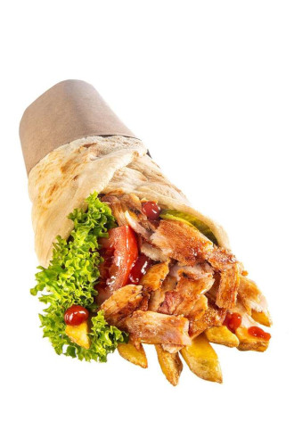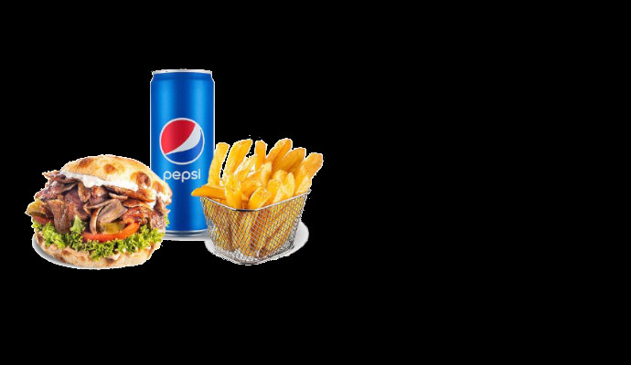 Tot ce-ți dorești într-un singur meniu – shaorma mare, cartofi și suc.
